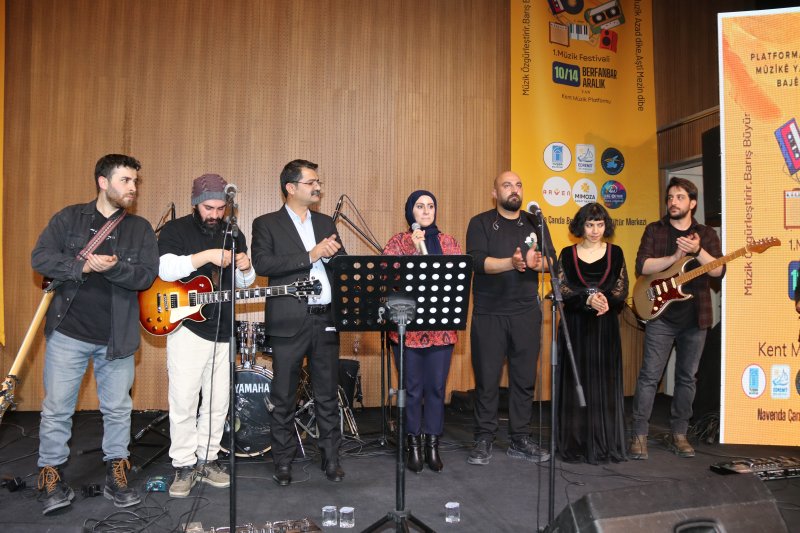Van Kent Müzik Platformu tarafından “Müzik özgürleştirir barış büyür” şiarıyla başlatılan Müzik Festivalinin ikinci günü büyük bir coşkuya sahne oldu. Berivan Kültür Merkezi’nde gerçekleşen festivale, Eşbaşkanlarımız Rabia Başak Koç ve Cemil Komi, İpekyolu Belediyesi Eşbaşkanları Canan Uzunay ve Tahir Şapkacı, Tuşba Belediyesi Eşbaşkanı Hanım Akkoş, Barış Anneleri Meclisi üyeleri, Tevgera Jinên Azad (TJA) aktivistleri ile çok sayıda yurttaş katıldı. Yoğun ilginin olduğu festivalde Koma Siya Roj ve Koma Zeng isimli gruplar sahne aldı. Ezgiler, dinleyicilere keyifli anlar yaşatırken Koma Zeng grubuna Eşbaşkanlarımız Rabia Başak Koç ve Cemil Komi tarafından sahne sonunda plaket verildi.